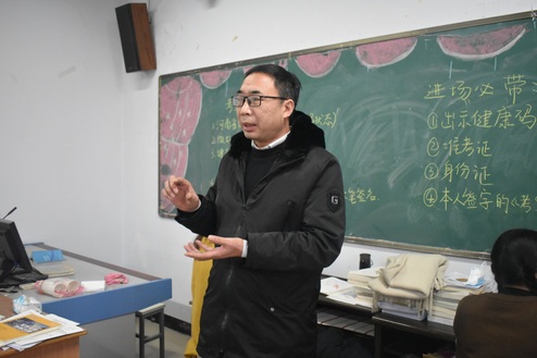 李峰书记首先对同学们认真备考的状态给予肯定和赞扬,接着以亲身经历嘱咐了同学们在备考以及作答过程中应该注意到的细节问题,并鼓励同学们要坚定信念,放松心态,有平常心、有信心,以积极、轻松的状态迎接考试。同时,党委副书记吴广飞也细心提醒同学们在进入考场时的注意事项,并强调要遵守好防疫要求。最后,老师给同学们送上精心准备的带有历院标志的慰问礼包,定制的红色“考研必过”袜子别具新意,十分暖心,表现了老师对同学们最诚挚的祝福。同学们倍感亲切,深受鼓励,本次活动整体气氛活跃,最终圆满结束。