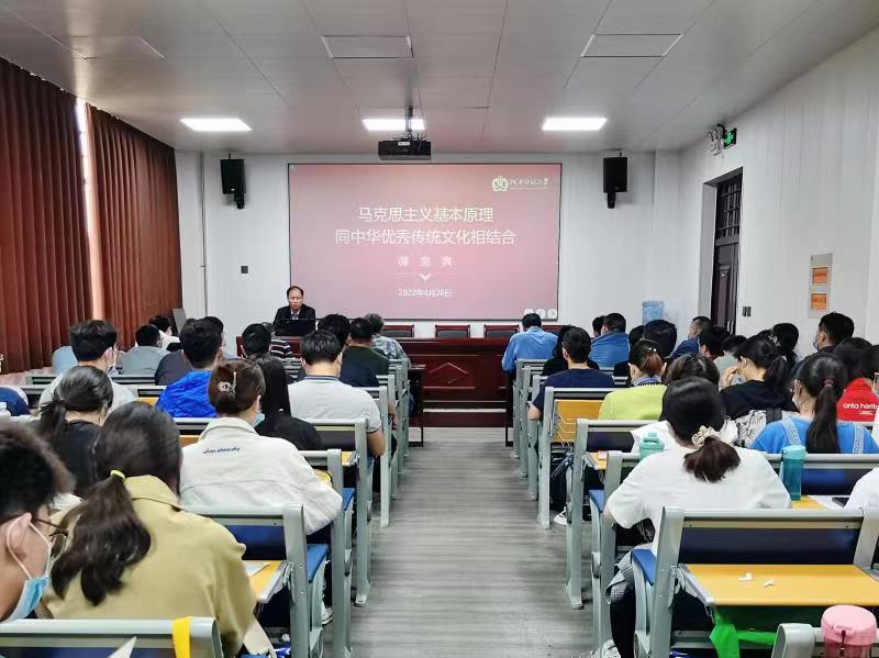 为进一步推动历史文化学院“能力作风建设年”各项工作的顺利展开,4月26日下午,学院特邀校党委副书记、工会主席梅宪宾教授为广大师生作题为“马克思主义基本原理同中华民族优秀传统文化相结合”的专题讲座。学院领导班子、全体教职工及学生党员代表参加讲座。讲座由历史文化学院院长苏全有主持。