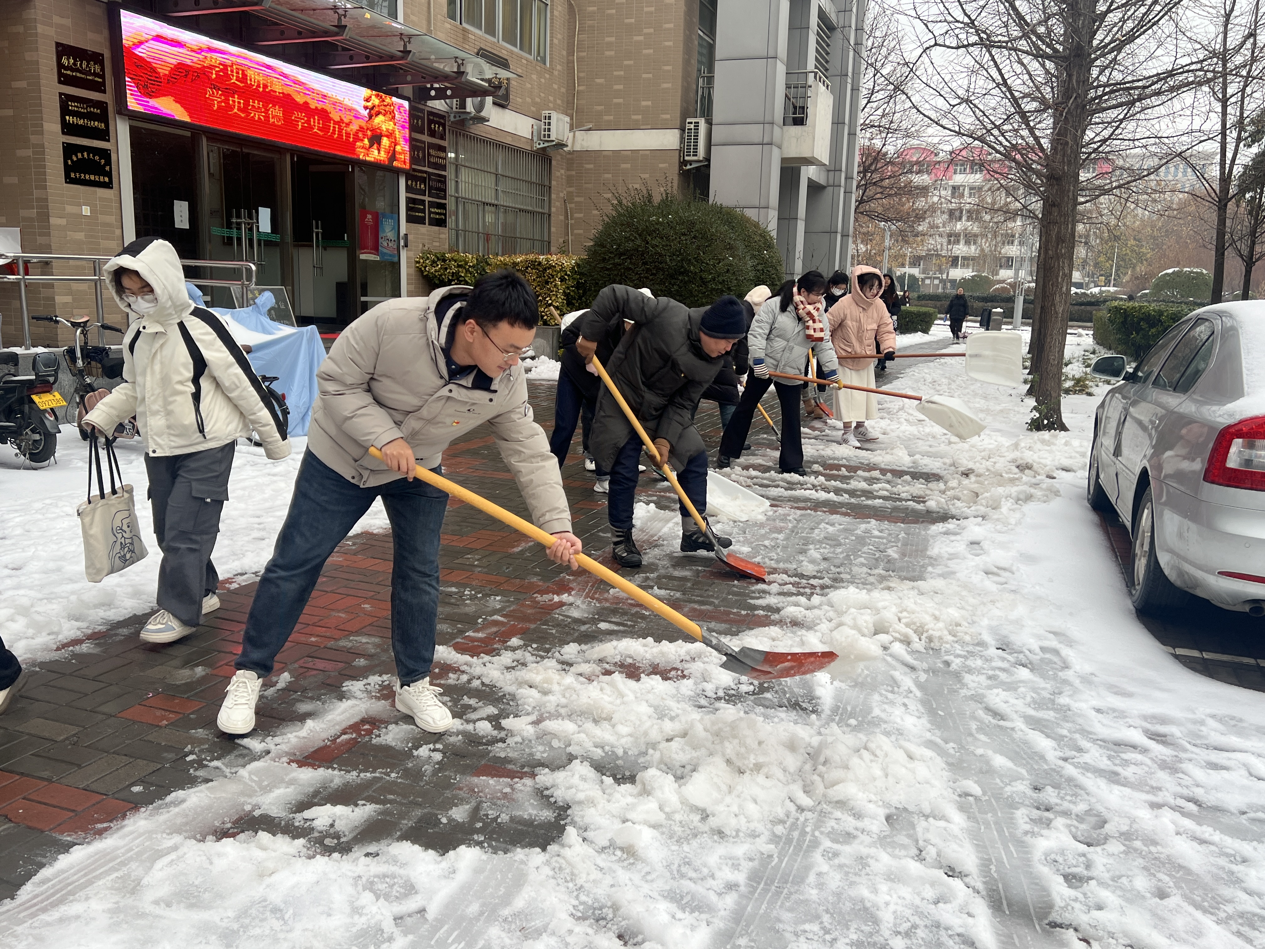 为了给广大师生创造良好的生活学习环境,引导学生增强爱校护校意识,提高学生的集体劳动与志愿服务意识,12月14日下午,历史文化学院组织开展党员志愿服务积雪清扫活动。