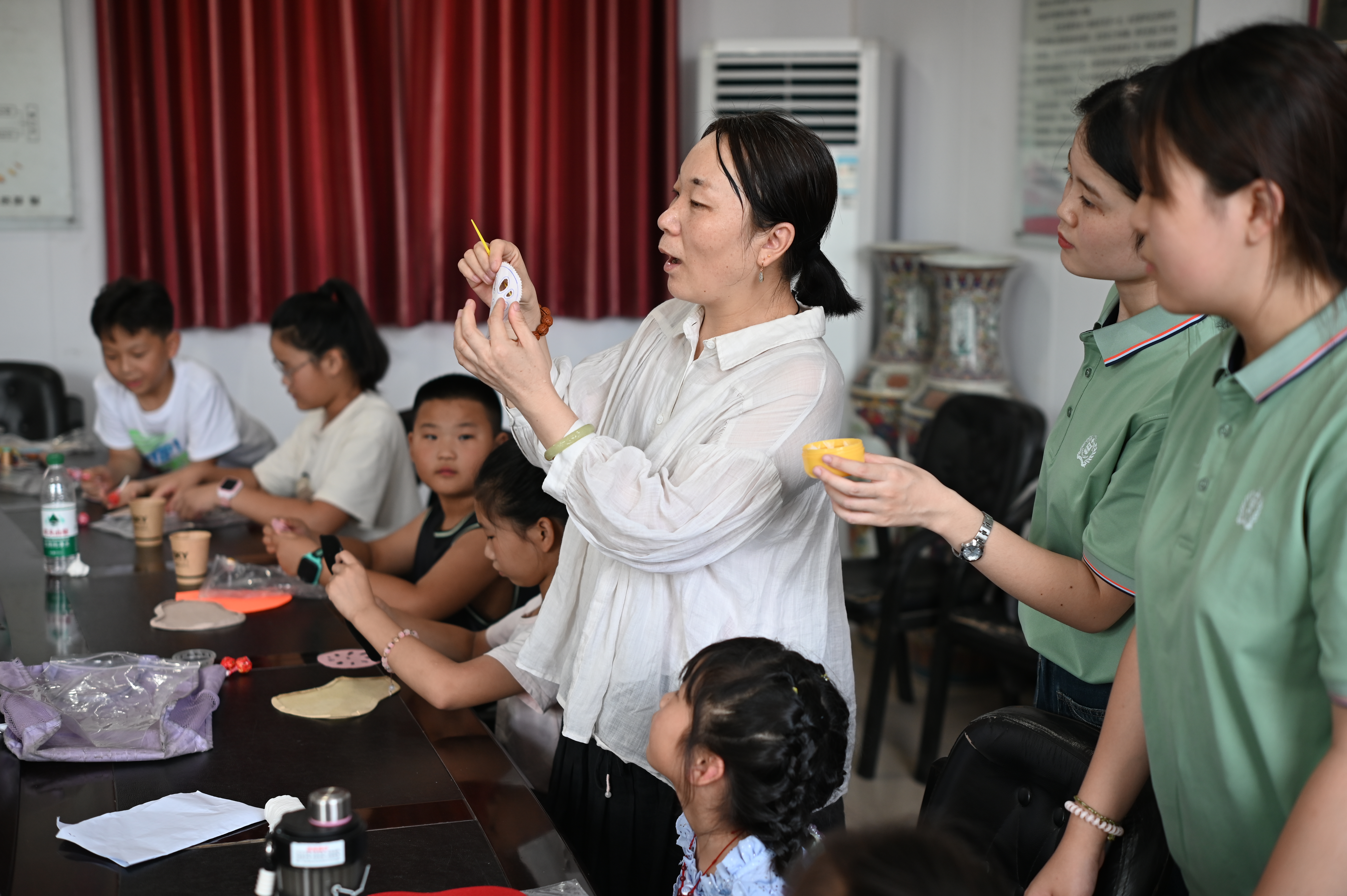 7月4日,河南师范大学历史文化学院“布贴绣梦·匠心织就”非遗传承团全体成员前往新乡市牧野区东牧村,在村委会二楼活动室开展了一场别开生面的布贴绣小课堂。东牧村的小朋友们参与其中,活动共分为三个环节,每个环节都在乐趣与知识的碰撞中进行,让孩子们在亲身体验中感受到非遗的魅力与传承的责任。