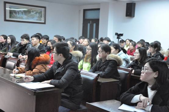 12月26日,院党总支副书记谢友海在二楼会议室以“时刻牢记党的宗旨”为题作专题党课报告。学院全体专兼职辅导员、学生党员和学生骨干等100余人参加了报告会。报告会由院团委副书记张笑乾主持。