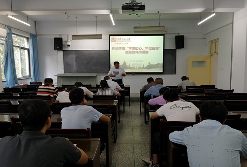 会上,马新峰传达了中央第二批不忘初心、牢记使命主题教育推进会、全省第二批主题教育推进会和我校不忘初心、牢记使命主题教育推进会精神,领学了《河南师范大学党员干部不担当不作为问题专项整治方案》《河南师范大学不忘初心、牢记使命主题教育调查研究工作方案》《河南师范大学不忘初心、牢记使命主题教育检视问题工作方案》等文件,结合学校进一步推进主题教育工作部署,就环境学院“不忘初心、牢记使命”主题教育下一步工作进行了安排部署。马新峰强调,学院党总支和各党支部要坚持以学习贯彻习近平新时代中国特色社会主义思想为主线,全面把握总要求,明确目标任务,加强组织领导,压实主体责任,把学习教育、调查研究、检视问题、整改落实四项重点措施抓实抓细,切实提升主题教育的实效性。他提出,全体党员干部要以主题教育为契机,提高政治站位,发挥先锋模范作用,锤炼党性修养,强化责任担当,进一步增强“四个意识”、坚定“四个自信”、做到“两个维护”,切实提升“守初心、担使命、找差距、抓落实”的政治自觉、思想自觉和行动自觉,推动学院各项事业高质量发展,以优异的成绩献礼新中国成立70周年。