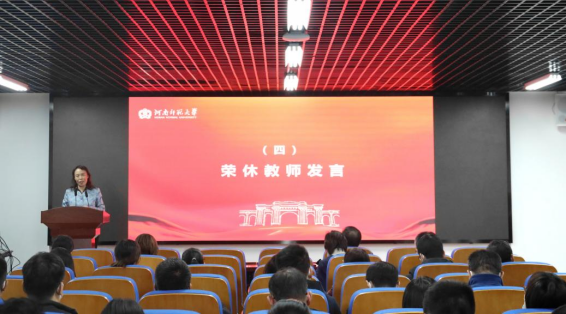 樊静教授回顾了自己与学院共同成长的点点滴滴,感谢曾经为了学院发展一起并肩战斗的“老战友”,感恩学院领导和老师一直以来的信任与支持,希望青年教师继续发扬艰苦奋斗、无私奉献的精神,推动学院事业发展再上新台阶。她表示会一如既往地关心和支持学院事业发展,继续发挥余热,为学院发展贡献力量。