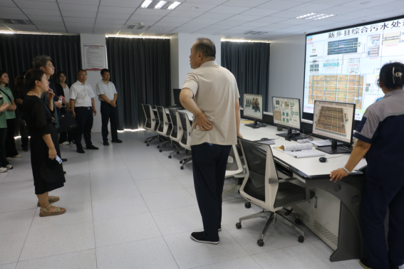 随后,在新乡市生态环境局新乡县分局负责人的陪同下,学院一行来到新乡县综合污水处理厂,实地参观了污水处理的各个工艺流程,深入了解了污水处理厂的运行管理模式、采用的技术工艺、达到的处理标准以及岗位需求情况。在参观过程中,双方就污水处理技术难题、行业发展趋势等问题进行了深入探讨。