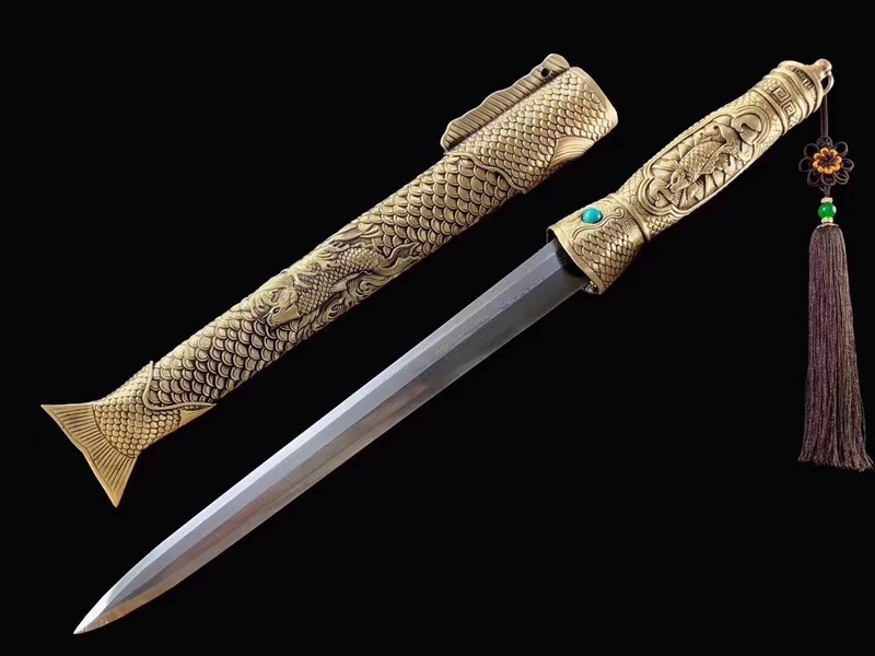 鱼之用于兵器,历史极为久远。《诗·小雅·采薇》中有“四牡翼翼,象弭鱼服”,说的是用鱼皮装饰箭套。此外,古代将士的刀鞘、铠甲,有些也是鱼皮制品。左思《吴都赋》中有“扈带鲛函,扶揄属镂”之句,晋人刘逵注云:“鲛函,鲛鱼甲可为铠。”用鱼皮装放箭镞和制作铠甲,除了鲛皮等鱼类因富含胶质而坚韧之外,还带有对鱼神的乞佑心理。在江苏南通博物苑中收藏有一枚春秋战国时代的铜戈,戈表面有阴纹鱼形图饰,这同鱼是引导神,通天善变,化生不死的信仰有一定的联系。在兵器上饰以鱼图之后,战士持之可抛却对死亡的畏惧,相信拥有了归魂化生的凭物,从而勇敢地冲锋陷阵,视死如归。