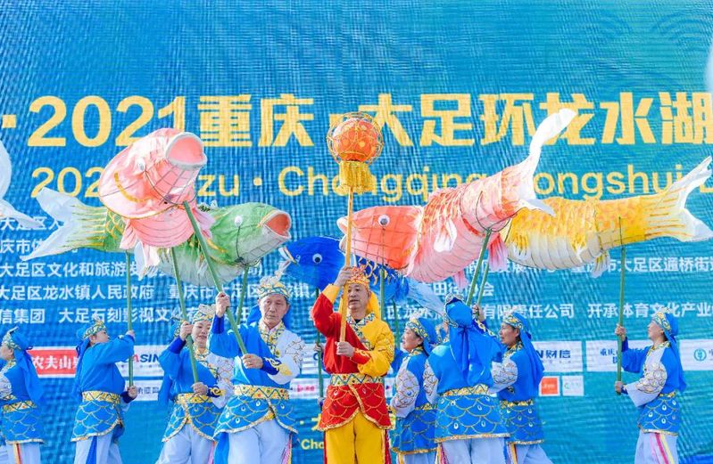 大足万古镇鲤鱼灯舞是重庆市的非物质文化遗产,相传产生于唐朝,唐朝末年战乱不断,社会动荡,人们对过去的安稳生活怀念不已,于是每逢年过节便制作几个寓意美好富足的鲤鱼灯挂在家门口,以祈求幸福的到来。经过千余年的发展,到清末,鲤鱼灯从最初的挂灯发展为一种特殊的艺术表现形式。据传,大禹在巴蜀地区治水时,曾得到一尾鲤鱼的帮助,鲤鱼送了大禹一幅河图助他治水成功。世人为了纪念大禹和帮助他的鲤鱼,便在农历正月初四祭奠神明时,舞弄起鲤鱼灯表示谢意(宋杨川子《重庆大足地区鲤鱼灯舞舞蹈特征研究》)。由民间自发形成、用于祈福朝拜的宝顶香会节形成后,鲤鱼灯舞也成为其最具特色的一项风俗活动。