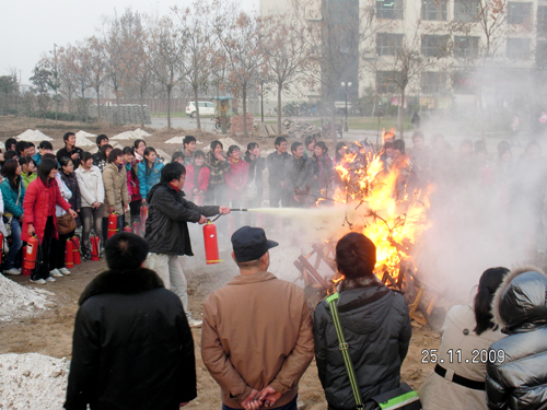 李庆广副总经理首先发表讲话,他指出:冬季气候干燥,较易发生火灾,举办此次消防演练活动,旨在普及消防知识,加强广大师生的消防意识,提高大家应对火灾的能力。