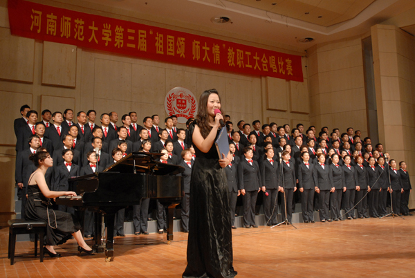 10月27日晚,秋高气爽,丹桂飘香。为庆祝新中国建国60周年和校第十一次党代会召开,河南师范大学第三届“祖国颂 师大情”教职工大合唱比赛在音乐厅隆重举行。共有24支队伍参赛。后勤集团103名职工组成的代表队连续第三次蝉联一等奖。