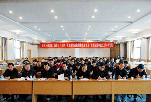 校长焦留成作了重要讲话。焦校长代表学校党委和行政对后勤集团职工代表大会的召开表示热烈的祝贺,对后勤集团始终坚持“三服务,两育人”,为学校的快速发展提供高质量的后勤保障给予了充分的肯定。焦校长就深化后勤改革的背景、任务和目标、具体措施和竞争激励机制四个方面进行了详细论述。焦校长指出,改革后勤管理机制,提高管理水平和效益,是深化后勤改革的必然要求,是继续做好“管理年”各项工作的重要举措。要通过优化内部机构、顺畅管理机制,实现优质服务、高效运行、不断改善工作条件和职工收入的目标。积极推行目标管理、量化考核,完善激励机制,做好成本核算,为实现后勤集团又好又快发展不断努力。
