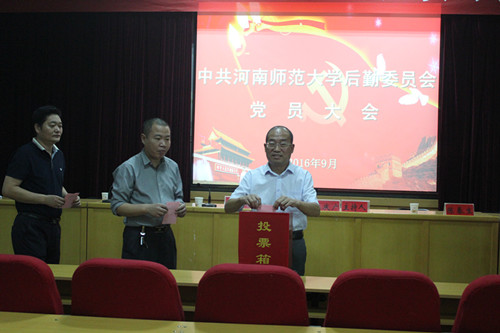 大会严格按照换届选举程序,由张海涛同志宣读校党委《关于基层党委、党总支、直属党支部委员候选人预备人选的批复》,后勤党委办公室主任滕梁莹宣读《中共河南师范大学后勤委员会换届选举大会选举办法》,李庆广同志介绍了后勤党委新一届党委委员候选人基本情况。大会通过了选举办法和选举工作人员名单。最后,到会的67名正式党员按照规定选出了新一届后勤党委委员。大会在庄严的国际歌声中闭幕。
