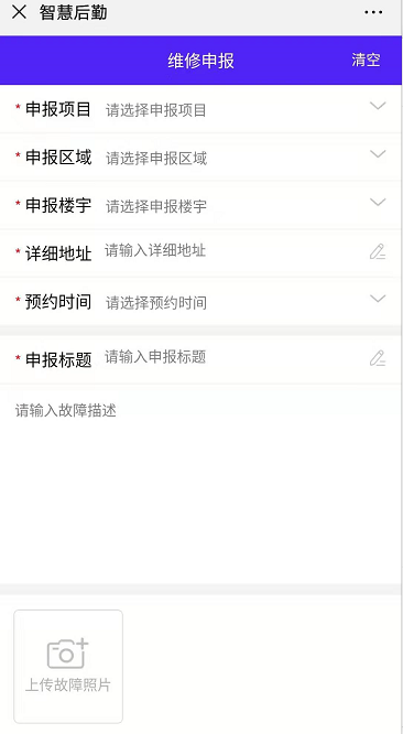 宿舍报修:宿舍有问题需要报修时,可直接在手机端填写需要报修的项目、问题、照片等,提交后,可在线跟踪报修的处理进度,完工后可在线进行评价。