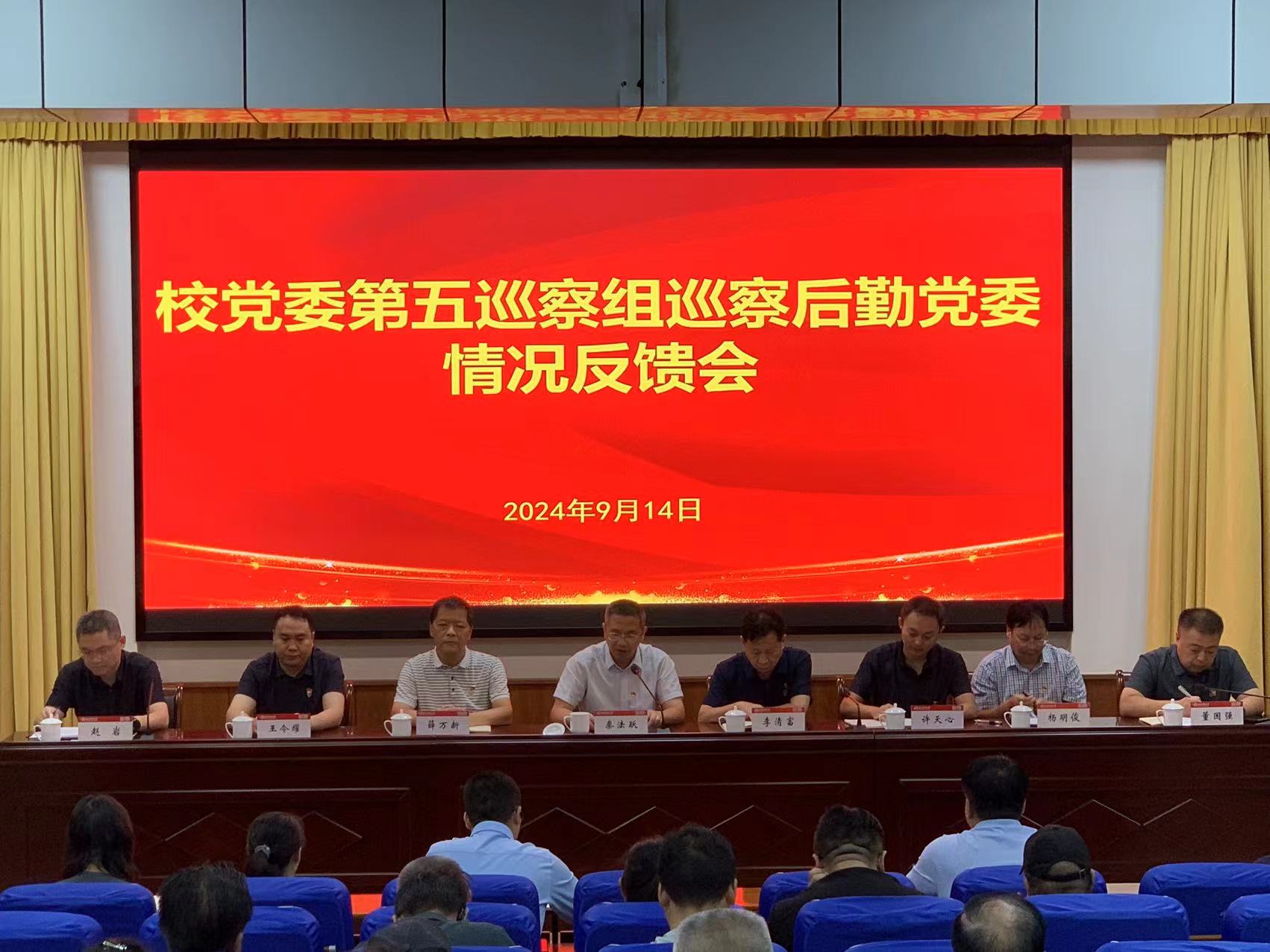 根据学校巡察工作安排部署,9月14日下午,校党委第五巡察组巡察后勤党委情况反馈会在党校教室召开。河南师范大学校党委常委、副校长秦法跃,校纪委副书记李清富,党委巡察工作办公室正处级巡察专员薛万新,党委第五巡察组组长、商学院党委书记许天心,组织部副部长王令耀,党委第五巡察组副组长、校纪委第一纪检监察室主任杨明俊、第五巡察组成员出席会议。后勤党委全体领导班子成员、全体职工参加反馈会。会议由后勤管理处处长、后勤服务集团总经理董国强主持。
