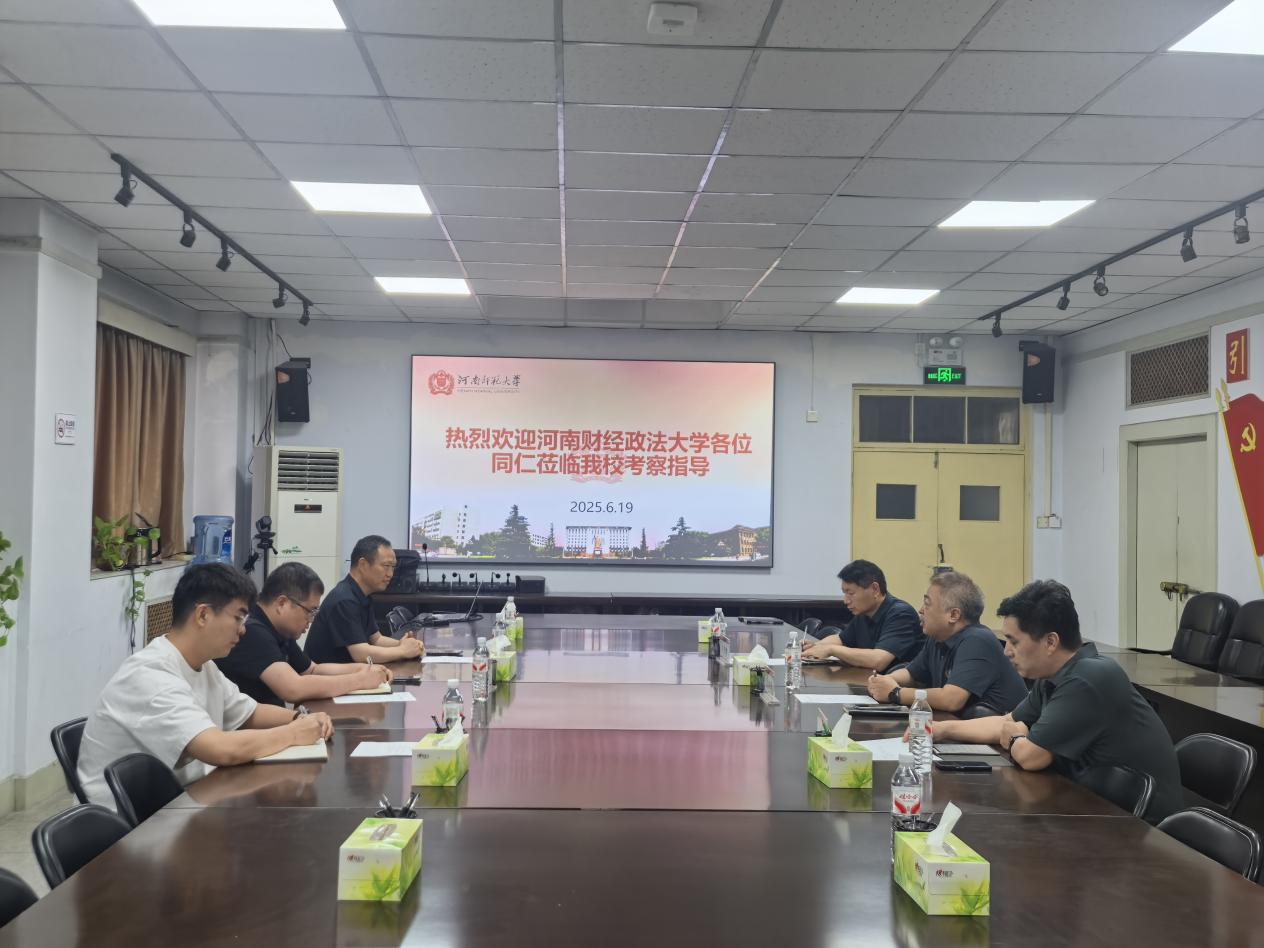6月19日下午,河南财经政法大学保障服务部常务副部长卫春江一行到我校开展调研交流。座谈会在文渊楼五楼会议室举行,后勤管理处处长、后勤服务集团总经理董国强,后勤管理处副处长、后勤服务集团副总经理赵胜杰,综合管理科科长王志璞出席会议。会议由董国强主持。