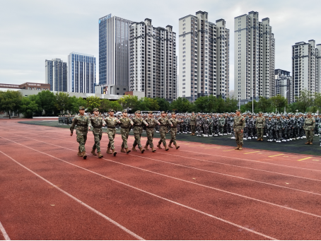 上午10点,雨过天晴,全体七年级新生到操场集合,承担本次军训任务的教官们,为师生们进行了军训科目展示,教官们过硬的军事素养,赢得了师生们阵阵掌声。