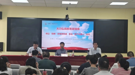 郝书记结合实际阐述了教育家精神的六个维度,包括心有大我,至诚报国的理想信念;言为士则、行为世范的道德情操;启智润心、因材施教的育人智慧;勤学笃行、求是创新的躬耕态度;乐教爱生、甘于奉献的仁爱之心;胸怀天下、以文化人的弘道追求。