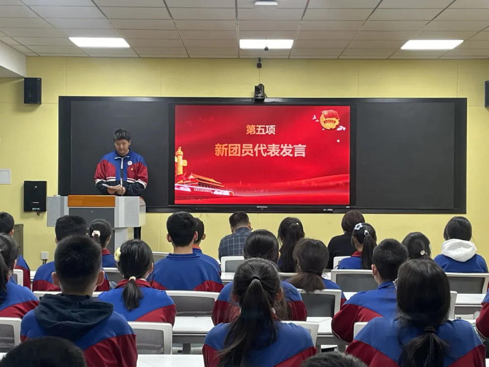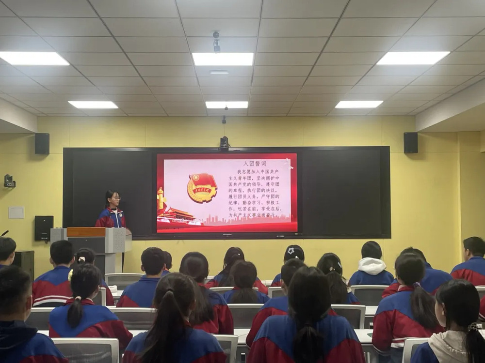 12月23日下午,河南师范大学附属外国语学校团委组织新团员,举行隆重的入团仪式活动。本次活动共有八项议程,具体包括奏唱国歌、宣读新团员名单、颁发团徽和团员证、入团宣誓、新团员代表发言、优秀团员代表发言、校领导寄语、奏唱团歌等。校团委赵文鹤书记,校初三年级李瑞丽主任出席了活动。