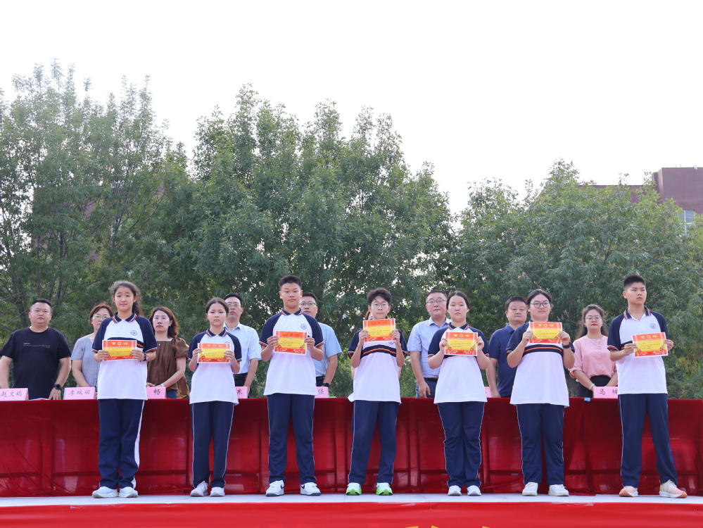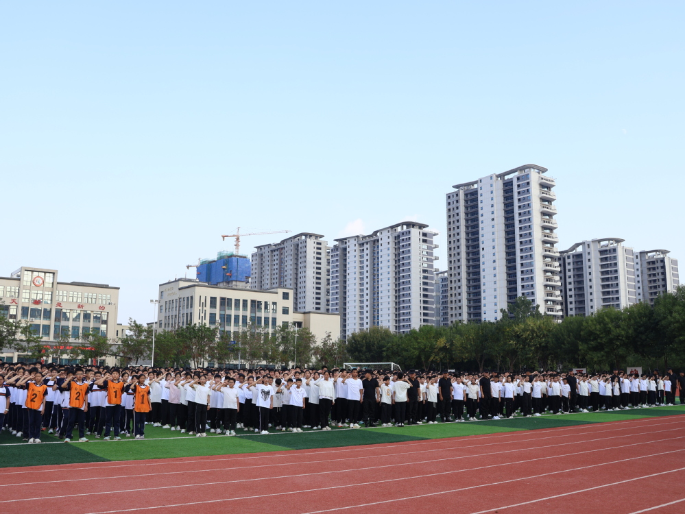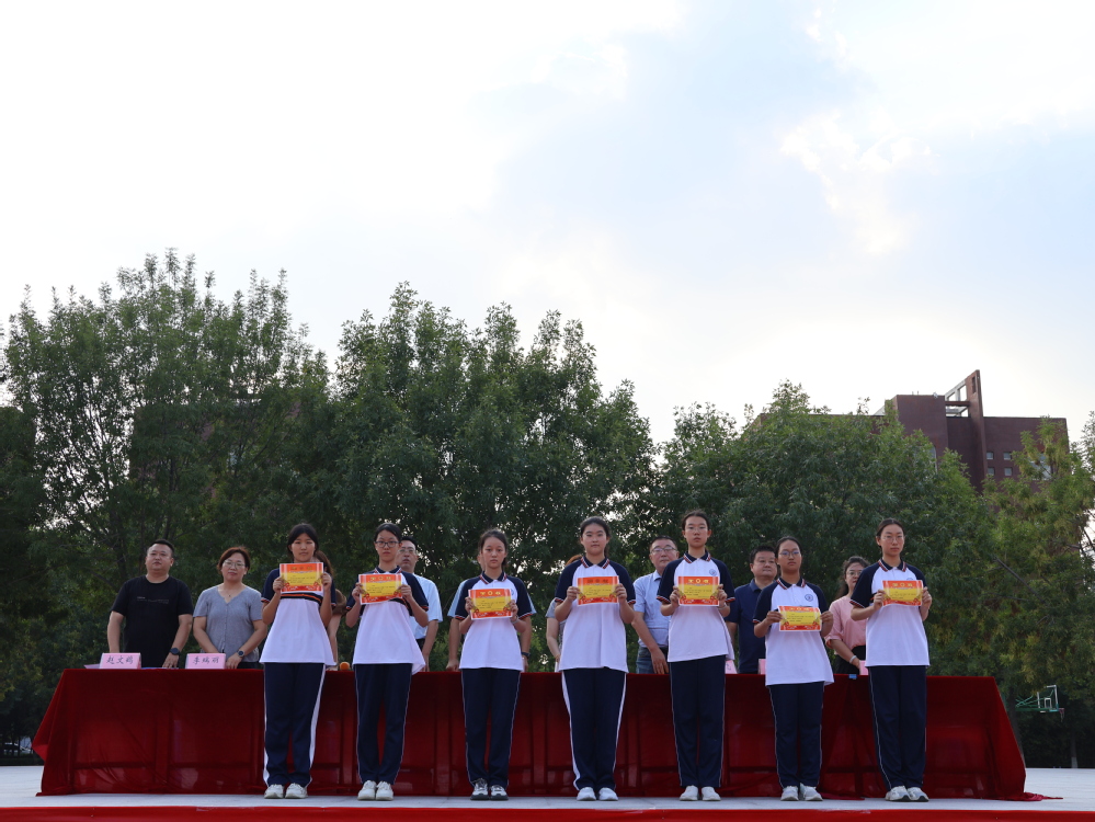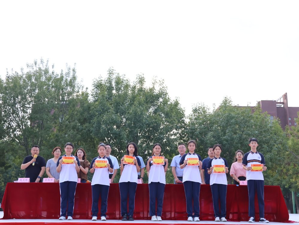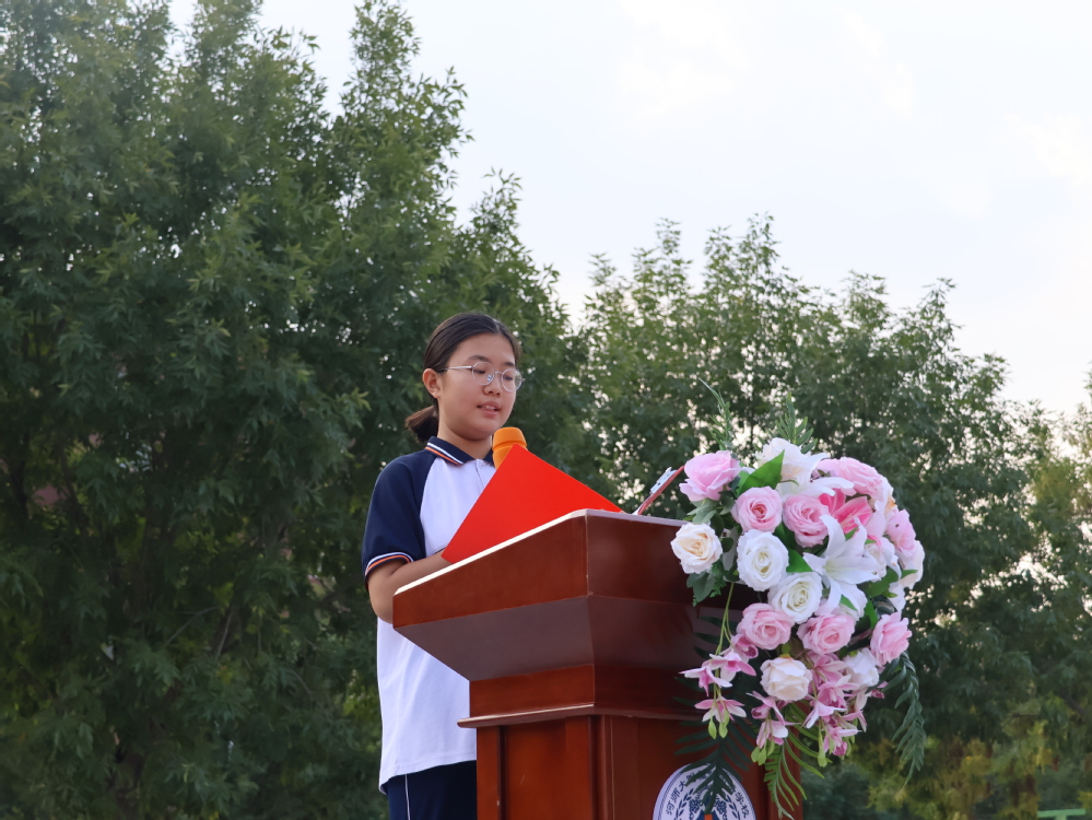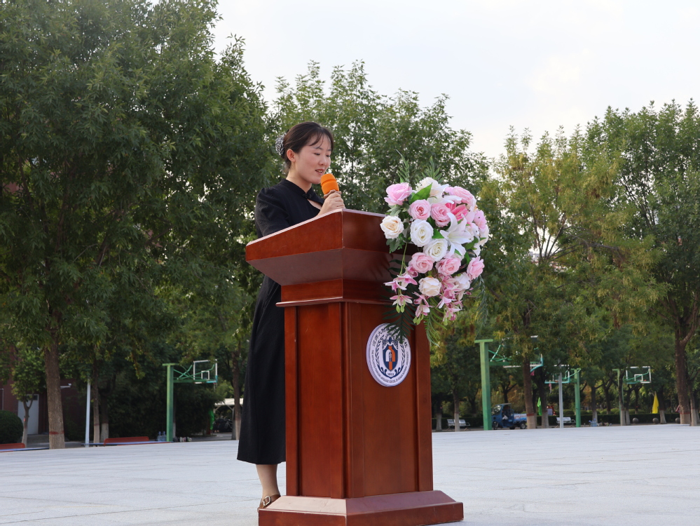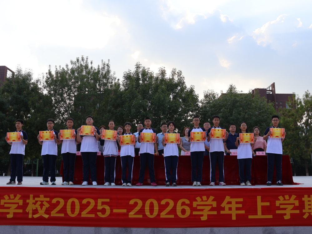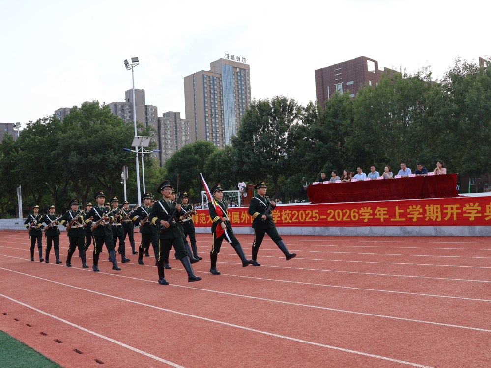 2025年9月1日,河南师范大学附属外国语学校2025-2026学年第一学期开学典礼暨学生表彰大会在校运动场举行。会议围绕上期工作回顾、学生表彰、十星评比、集体宣誓、习惯养成等方面展开。典礼由德育处主任赵文鹤主持。