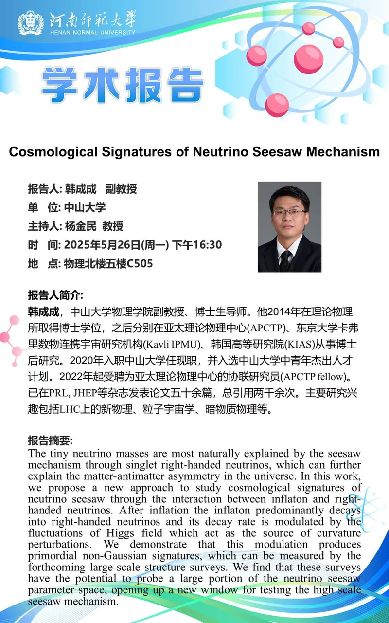 学术报告:Cosmological Signatures of Neutrino Seesaw Mechanism