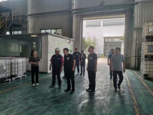 在濮阳市绿色奇点新材料有限公司调研,仝胜利总经理介绍了企业的生产状况和存在的技术问题,并与服务团专家进行了深入交流。