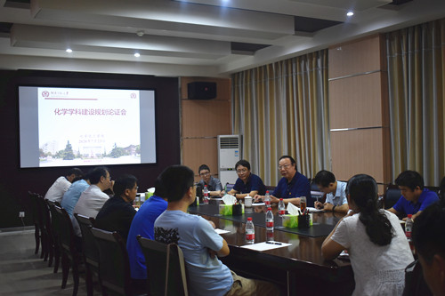 723日下午,我院化学特色骨干学科建设规划论证会在化学北楼N114会议室举行,校党委书记赵国祥到会指导并讲话。化学化工学院党政领导班子成员、党委委员、学科方向带头人、各研究所所长、学科教学等相关科级干部参加了本次会议。