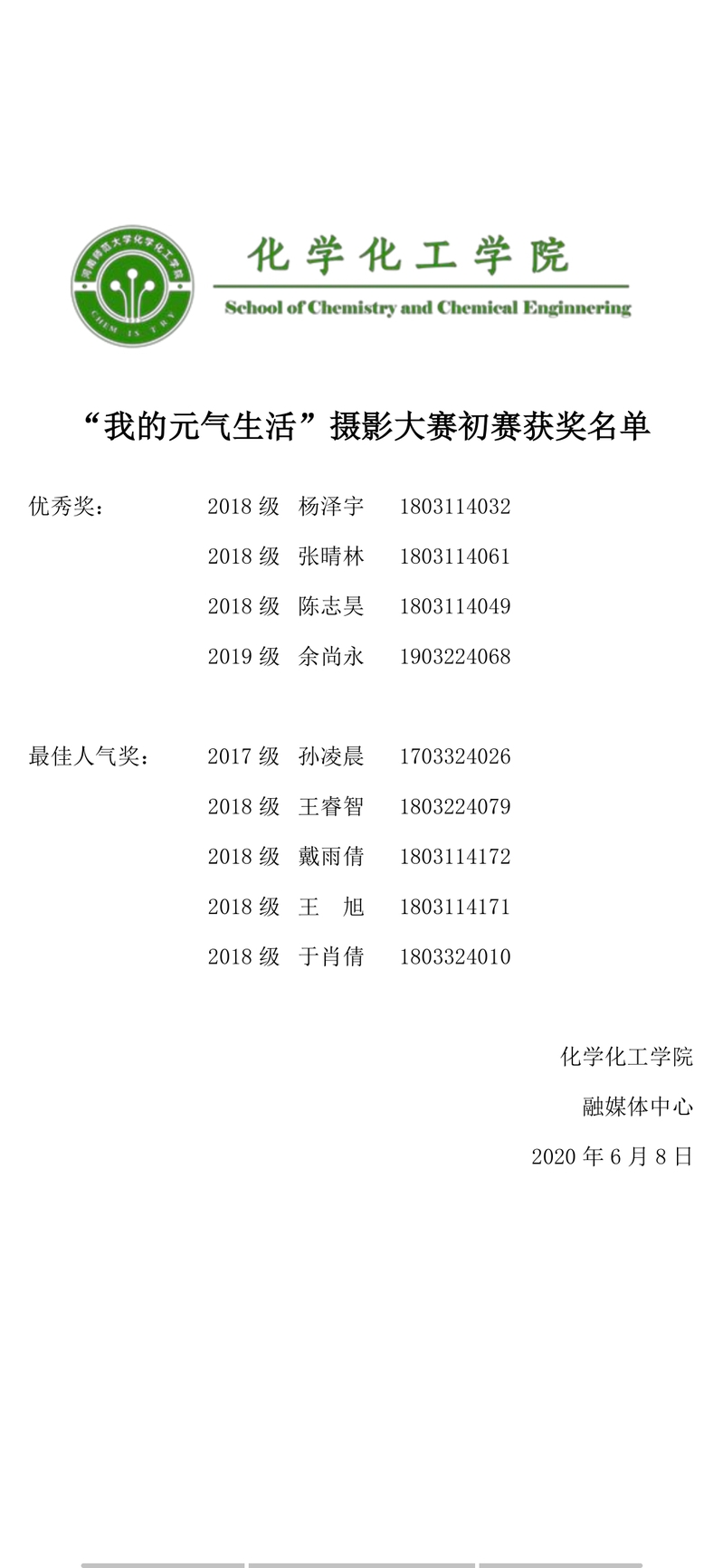 “我的元气生活”摄影大赛初赛获奖名单