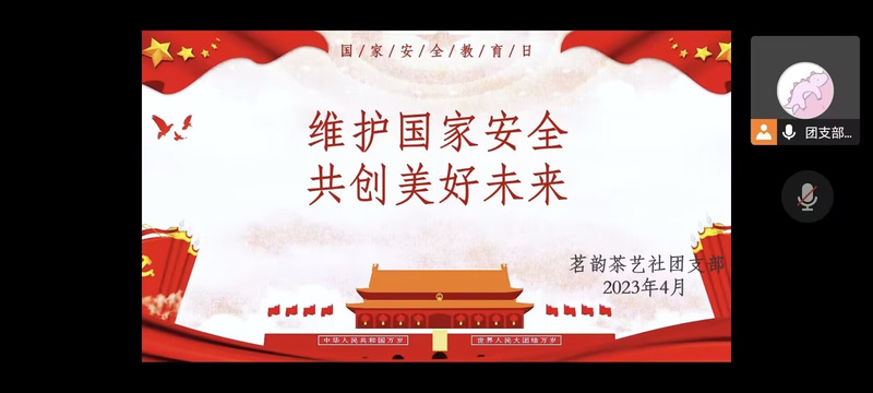 时间:2023-4-29|作者:张欣然 杨书展|来源:茗韵茶艺社 为进一步促进学生增强国家安全意识,学习国家安全法律知识,切实履行和维护国家安全的法律义务,4月29日,我院茗韵茶艺社举办的“维护国家安全,共创美好未来”团日活动于腾讯会议线上平台开展。 活动前期,社团团支部对本次活动进行详细介绍,便于有意愿参加活动的同学对活动有更深刻的了解。活动伊始,两位主持人一同宣读开场词,陈述此次活动主题以及开展此次团日活动的背景,结合幻灯片与视频介绍国家安全相关内容,号召社员们共同学习。随后,主持人播放有关我们该如何维护国家安全的视频。接着,通过分享身边的例子以增强社员的参与感。同学们纷纷表示此次活动让她们学习了国家安全相关法律法规,增强了国家安全意识,也更有信心增强集体的凝聚力和战斗力。 本次团日活动的顺利开展让同学们学习了国家安全知识、了解公民应尽的义务与职责,为增强团员们的国家安全意识,自觉维护国家安全,增强其对国家和民族的认同感认识到“天下兴亡,匹夫有责”起了重大作用。 |