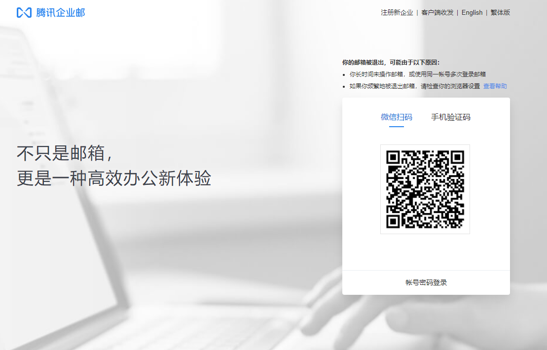 注意:开启安全登录后,个人邮箱将会被自动退出,出现以下页面,请使用微信扫码再次登录。