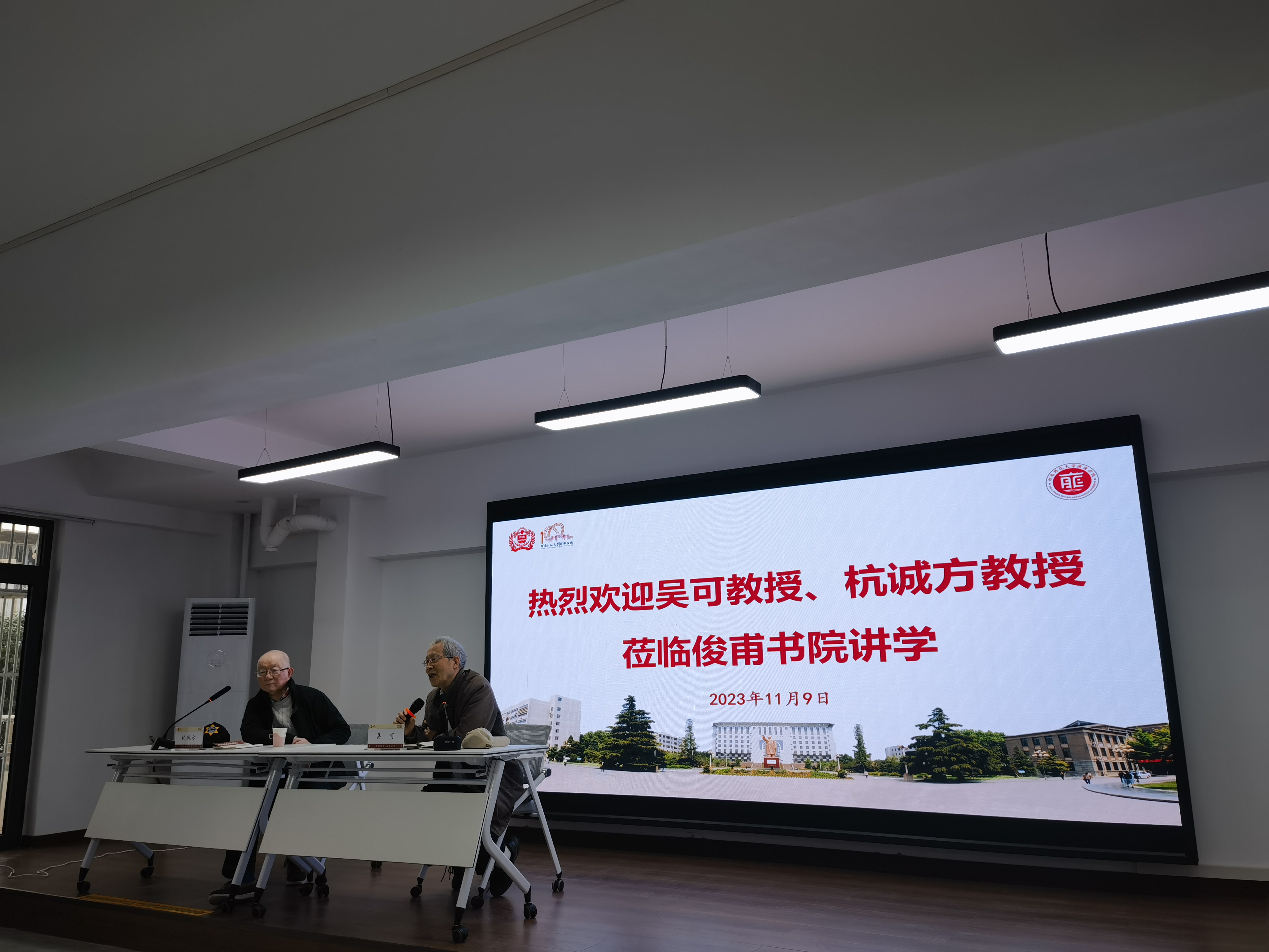 11月9日至10日,黎景辉、吴可、杭诚方三位教授先后到俊甫书院与书院领导班子举行了两场座谈会,面向书院学生举行了一场报告会,全面了解了书院的建设情况,他们指出俊甫书院办学理念科学,功能定位明确,培养目标清晰,对书院的前期建设工作给予了充分的肯定,并对俊甫书院顶层设计、荣誉课程建设、第二课堂活动开展等情况提出了意见建议。他们强调,在今后的工作中,一要强化顶层设计,持续优化体制机制,统筹多方资源,努力形成育人合力;二要优化荣誉课程建设,特别是要在高阶专业课程上下功夫,成立专家团队,科学设置本硕贯通高阶课程;三要注重专业交叉,充分发挥书院多专业优势,稳步推进专业交叉融合,不断提高学生创新能力。