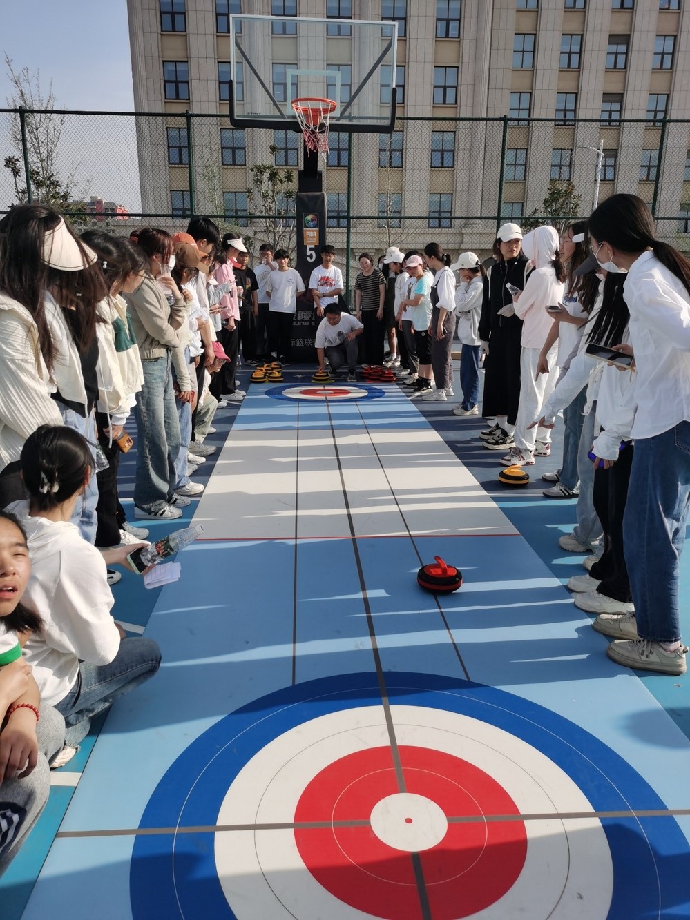 本次趣味运动会共设有“环环相扣”“四人五足”“送鸡毛信”和“旱地冰壶”四个项目。“环环相扣”项目要求参赛者手拉手通过绳圈,考验了团队成员间的默契与协作。“四人五足”项目则通过绑腿跑的方式,展现了团队合作的力量。“送鸡毛信”项目通过传递扭扭棒的方式,考验了参赛者的协调性和团队合作。“旱地冰壶”则考研了学生团队成员间的合作性与策略。这些项目既考验了参赛者的体力与智力,也考验了团队间的默契与协作能力。在激烈而友好的竞争中,同学们展现出了积极向上的精神风貌和团结互助的优良传统。