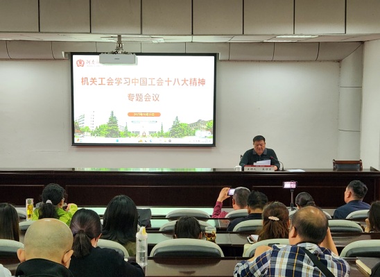 10月31日上午,机关工会在勤政楼第四会议室召开会议传达学习中国工会十八大会议精神,机关工会委员、各工会小组长及部分职工代表参加了会议。会议由机关工会主席朱守宏主持。
