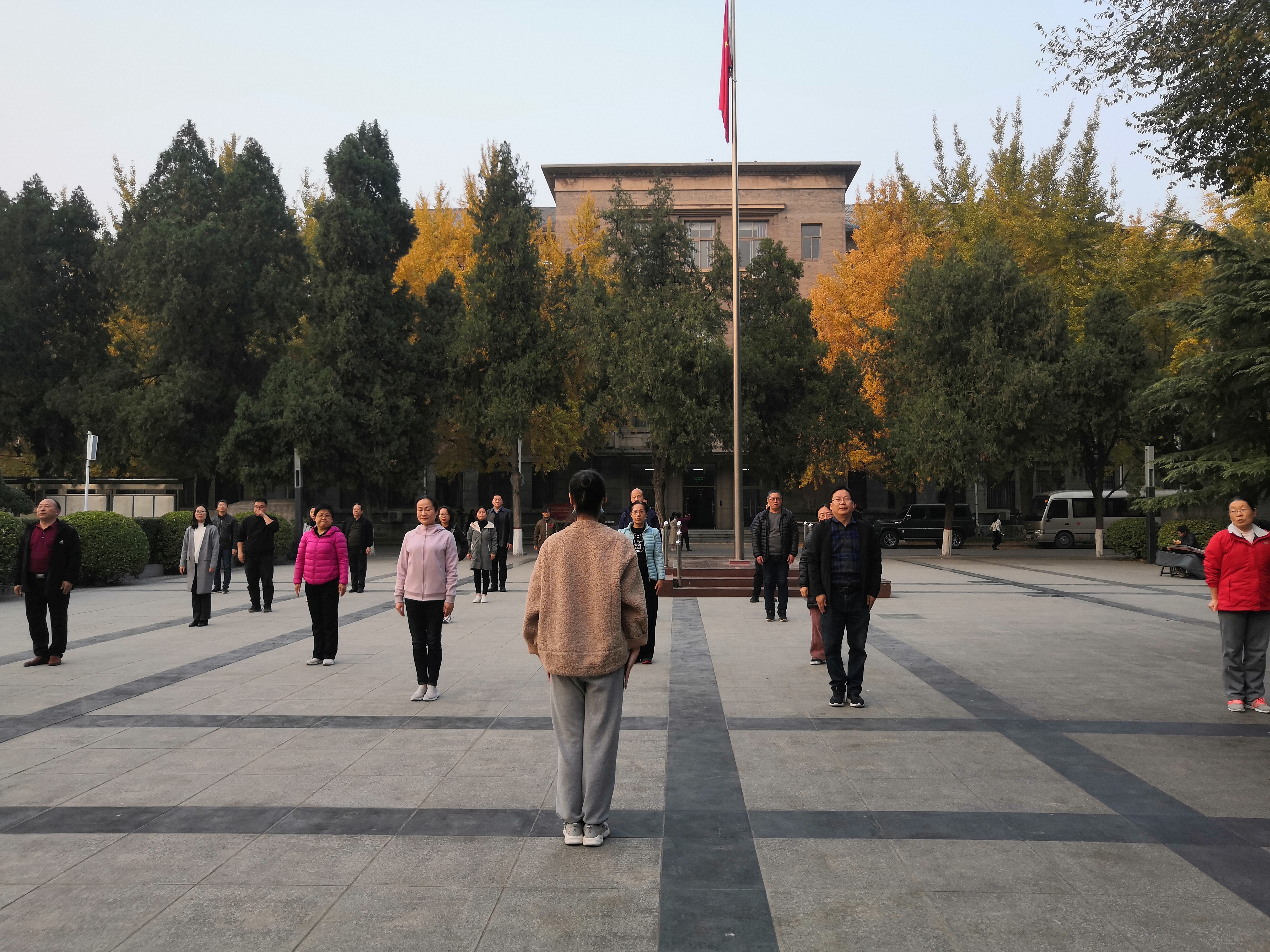 为倡导“每天锻炼一小时,健康工作五十年,幸福生活一辈子”的生活理念,增强教职工体育锻炼意识,11月12日下午,机关工会在国旗广场开展了第九套广播体操培训活动。