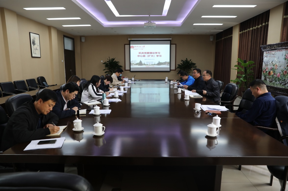 4月27日下午,机关党委在勤政楼第二会议室召开理论学习中心组(扩大)学习会,机关党委委员、纪委委员和各党支部书记参会,会议由机关党委书记马新峰主持。