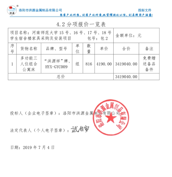 河南师范大学15号、16号、17号、18号学生宿舍楼家具采购及安装项目公开招标结果公告