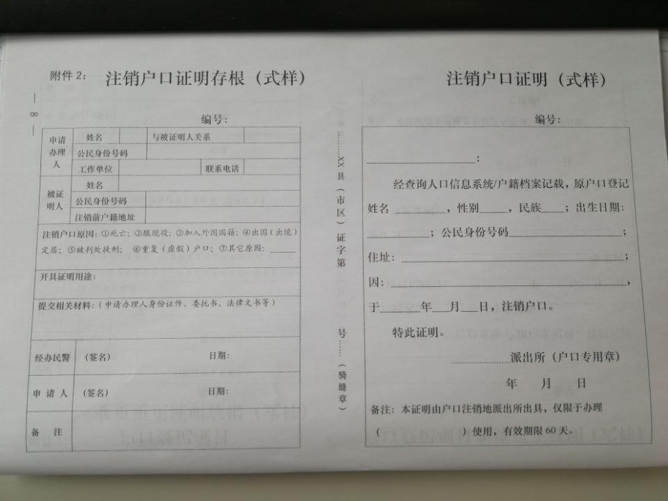 注销户口证明(式样)