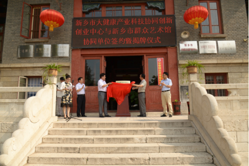 7月3日上午,我校新乡市大健康产业科技协同创新创业中心与新乡市群艺馆签订合作协议,并举行了协同单位揭牌仪式。我校科技处田小勇副处长出席仪式并讲话。群艺馆馆长张斌世、新乡市非物质文化遗产保护中心主任王明磊,我校文学院副院长段勃教授、我校中原非物质文化遗产保护研究中心主任丁永祥教授等参加签约暨揭牌仪式。