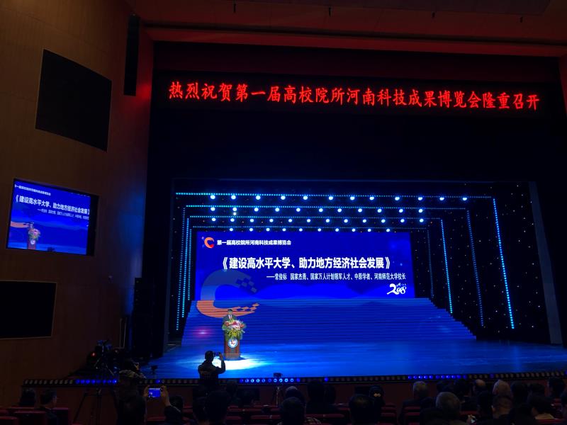 10月26-27日,以“创新引领发展 协同融合共赢”为主题的高博会在新乡举办,共展出国内外高校、科研院所及企业的各项科研成果1800余项、科技产品3000余件,签约项目140个,投资总额1285.8亿元,取得了丰硕成果。做为承办单位之一,我校成立了高博会河南师范大学组委会,由党委常委、副校长刘玉芳担任主任,科技处等相关职能部门、各理科学院为成员,参与了高博会高校联络组、会议展示组、会议论坛组等3个组筹备工作,承担了特色产业论坛、项目现场路演、科技成果展示等任务。会议期间,校党委书记赵国祥出席论坛并致辞,校长常俊标作了题为“建设高水平大学、助力地方经济社会发展”的主旨报告。