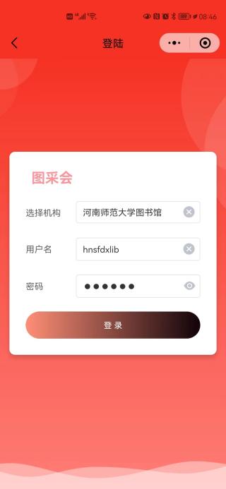 扫描下方二维码进入小程序点击右下方菜单栏“我的”,选择“立即登录”,选择机构:河南师范大学图书馆。输入用户名和密码,点击提交按钮,成功登录,即可选书。