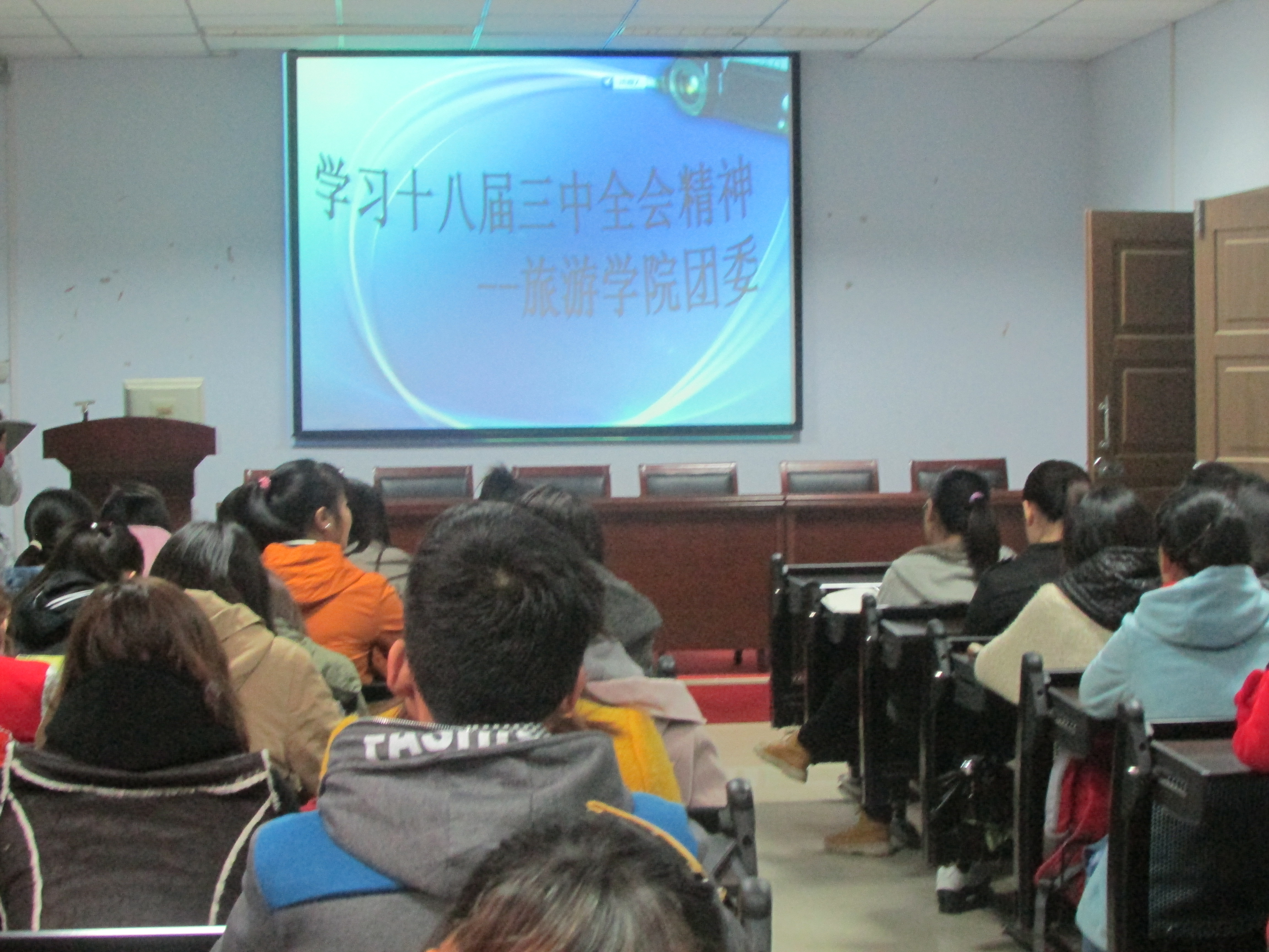 在十八届三中全会召开之际,11月9日,旅游学院在琢玉楼第二会议室组织学生观看十八届三中全会开幕式,开展三中全会精神讨论会。我院2012级、2013级百余名学生代表观看了开幕式并积极参与讨论。
