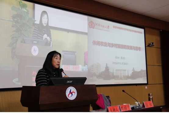 11月26日上午,应河南师范大学旅游学院邀请,南开大学旅游与服务学院副院长、博士生导师徐虹教授莅临我校讲学。徐教授在外国语楼学术报告厅作了“休闲农业与乡村旅游发展与思考”的主题讲座。报告由旅游学院副院长刘桂兰副教授主持,学院相关领导、部分教师、研究生、本科生等150余人聆听了讲座。