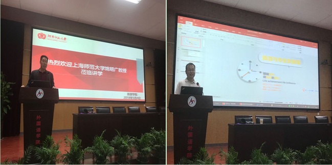 5月4号下午,应旅游学院邀请,河南师范大学外国语学院99届毕业生、上海师范大学旅游学院副教授、爱尔兰沃特福德理工学院语言与旅游款待系访问学者、大学生创业导师姚明广在外国语学院报告厅为旅游学院师生进行了一场“旅游与专业发展观”的主题讲座,旅游学院党委书记孙昌松主持。旅游学院师生百余人共同聆听了此次讲座。