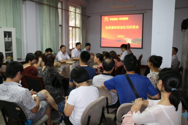 7月3日下午,旅游学院党总支在院会议室以“不忘初心、牢记使命”为主题举行党员“政治生日”主题党日活动。庆祝会由院党总支副书记吴耀武主持,学院领导班子和教工党员30余人参加。