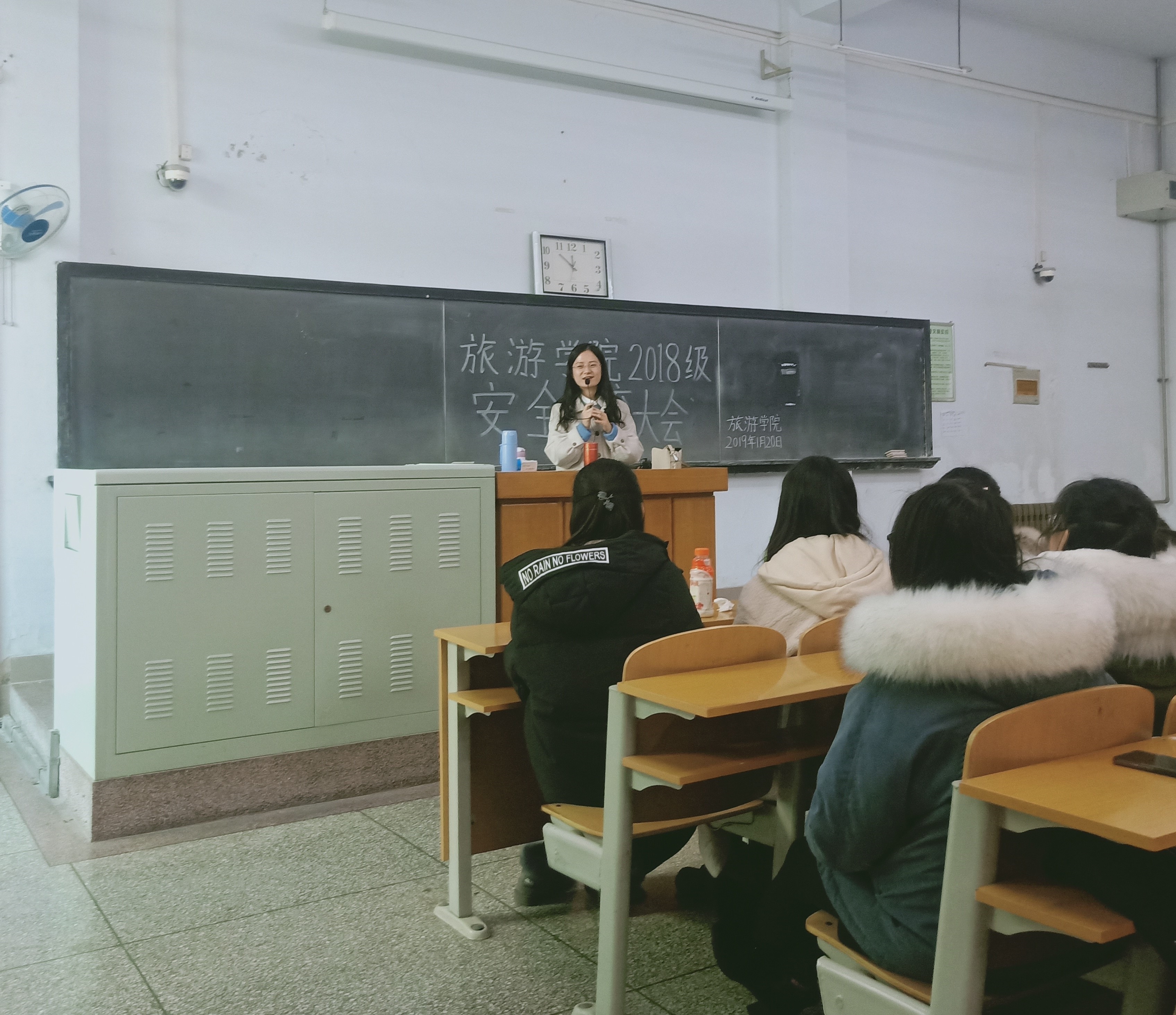 为增强同学们的安全防范意识,提高同学们的安全防范能力,旅游学院于1月20日上午在新554—107教室召开2018级安全教育大会,2018级辅导员鲍伟娜老师为同学们详细地讲解寒假生活中的安全注意事项。
