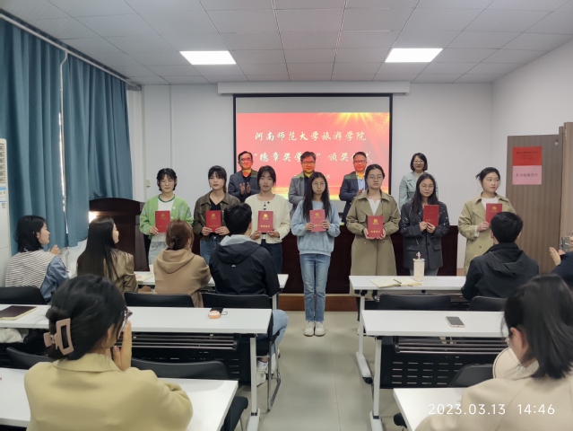 为嘉奖成绩优异的学生,3月13日下午,旅游学院于琢玉楼多功能报告厅举行“德章奖学金”颁奖仪式。河南师范大学校友与基金工作办公室主任苏现伐、旅游学院负责人、各年级专兼职辅导员和获奖学生参加颁奖仪式。仪式由旅游学院党委副书记翟方主持。