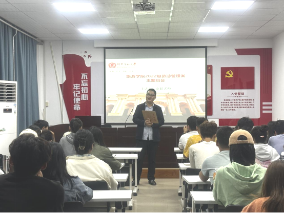 为增强班级同学对专业的认知度,掌握高效学习方法,提升竞争力,树立旅游管理专业学科自信,10月31日下午,旅游学院2022级旅游管理类班开展“坚定专业自信,夯实核心素养”主题班会。班主任余超老师及旅游管理类班同学参加本次主题班会。