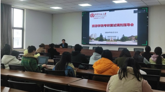 为持续推进考研工作开展,帮助考研学子全面精准做好复试与调剂准备,提高学生考研录取率,3月13日上午,旅游学院于琢玉楼行知大讲堂开展复试调剂指导会。旅游学院党委副书记翟方、2020级辅导员耿妍、2022级专升本辅导员闫依铭及全体考研学生参加本次指导会,会议由梁书斌教授主讲。