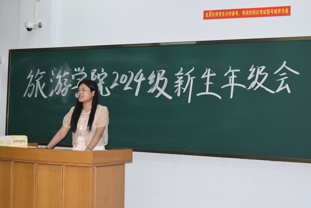 为推进2024新生工作有序开展,帮助新生尽快适应大学生活、增强安全意识、提升班级凝聚力和向心力,旅游学院于9月8日晚在新五五四楼开展2024级新生年级会。本次会议由2024级辅导员闫依铭、2024级兼职辅导员李佳旭以及2024级全体新生共同参与。