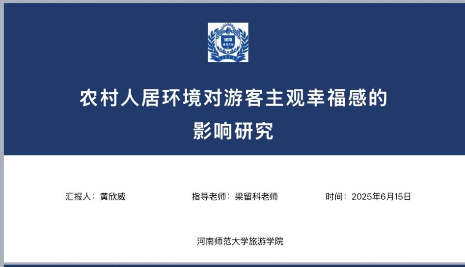 首先,黄欣威同学进行了题为《农村人居环境对游客主观幸福感的影响研究》的汇报。她深入剖析了农村人居环境的各项要素,通过大量实地调研数据和严谨的分析方法,阐述了其对游客主观幸福感的具体影响机制。研究指出,优美的自然环境、完善的基础设施以及和谐的乡村氛围等,都与游客的幸福感提升密切相关,为农村旅游发展提供了新的思考方向。随后,刘如月同学带来了《龙脊梯田农业文化遗产价值评估与可持续发展策略研究》的精彩汇报。她详细介绍了龙脊梯田独特的农业文化遗产价值,从历史、文化、生态和经济等多个维度进行了全面评估,并针对当前面临的问题,提出了一系列具有针对性和可操作性的可持续发展策略,如加强文化保护、发展生态旅游、促进社区参与等,引发了师生们的热烈讨论。