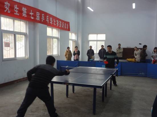 2012年 11月 10 日上午,河南师范大学第七届研究生乒乓球联赛在塑胶田径场乒乓球室成功举行。本次比赛由校研究生学院、研工部主办,校研究生会承办。