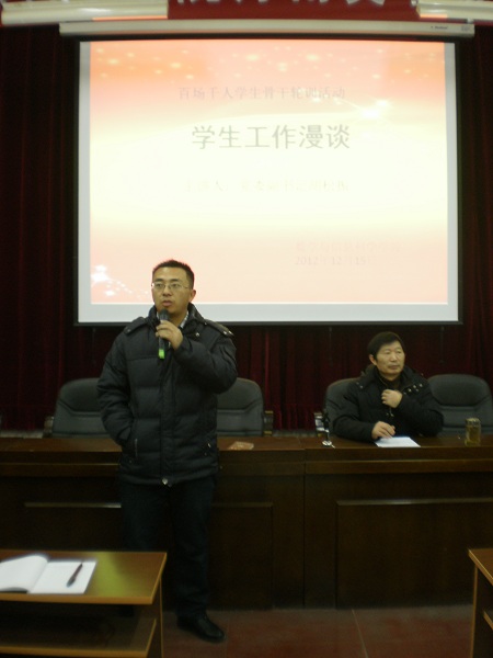 谈学生工作,促未来发展。12月15日上午,数学与信息科学学院于院多功能报告厅举办了“学生工作漫谈”主题报告会。会议由院团委书记苗山根主持,院党委副书记胡松振担任主讲,学生会全体成员,2011级、2012级各班班委积极聆听了此次报告会。