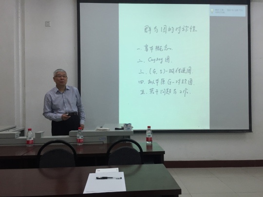 方新贵教授从群和图的基本概念出发,介绍了群与图及其对称性的概念,并引出这次报告重点讲解的两大类图:Cayley图和陪集图,随后方教授用深入浅出的语言讲解了Cayley图的概念、性质以及其研究的内容,接着从(G,S)-弧传递图入手详细地讲解了如何利用群论的方法构造对称图,方教授还讲解了如何运用拟本原方法构造拟本原G—对称图,最后他提出了自己目前发现的并且日后要继续研究的关于群与图的对称性的若干问题,也为与会人员的研究提供了参考价值。方新贵教授的学术报告由浅入深,同学们深刻了解了群与图的相关知识,大家受益匪浅。会后与会人员踊跃提问,就感兴趣的问题与方教授进行探讨和交流。